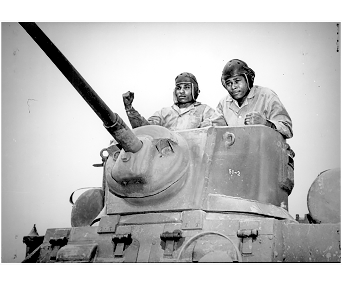 Two recruits in a light tank during training in mechanized warfare at Montford Point, Camp Lejeune, N.C., April 1943. (Photo by Pat Terry)